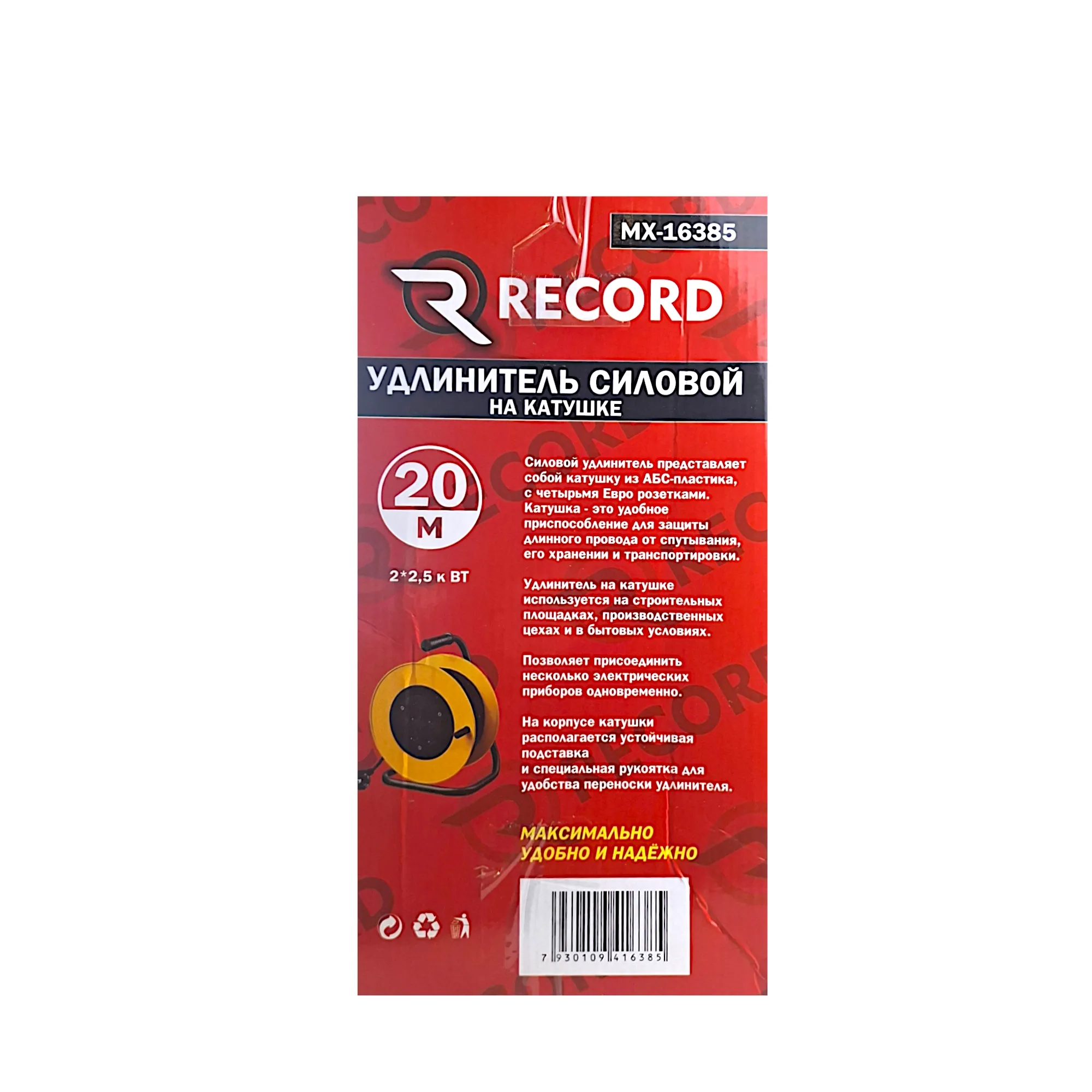 Силовой удлинитель на пластиковой ABS катушке 20 метров MX 16385 создан для профессиональной эксплуатации в тяжелых условиях. Благодаря 20-метровому кабелю вы получаете полную свободу действий на стройплощадке, в цеху, гараже или при работе во дворе.
