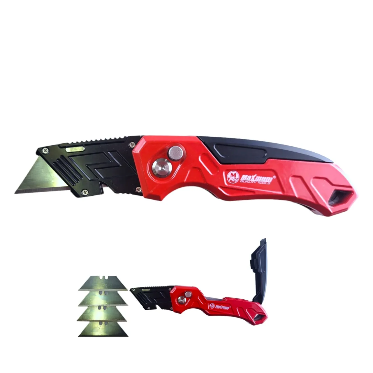 Нож строительный/канцелярский с кнопкой для быстрой смены угла резки и системой Quick Change для быстрой смены лезвий от "Maximum Quality Tools" предназначен для разрезания гипсокартона, бумаги, обоев, картона, ковролина, линолеума и т.п. Стильный металлический корпус дополнен резиновыми вставками и отсеком для запаски.