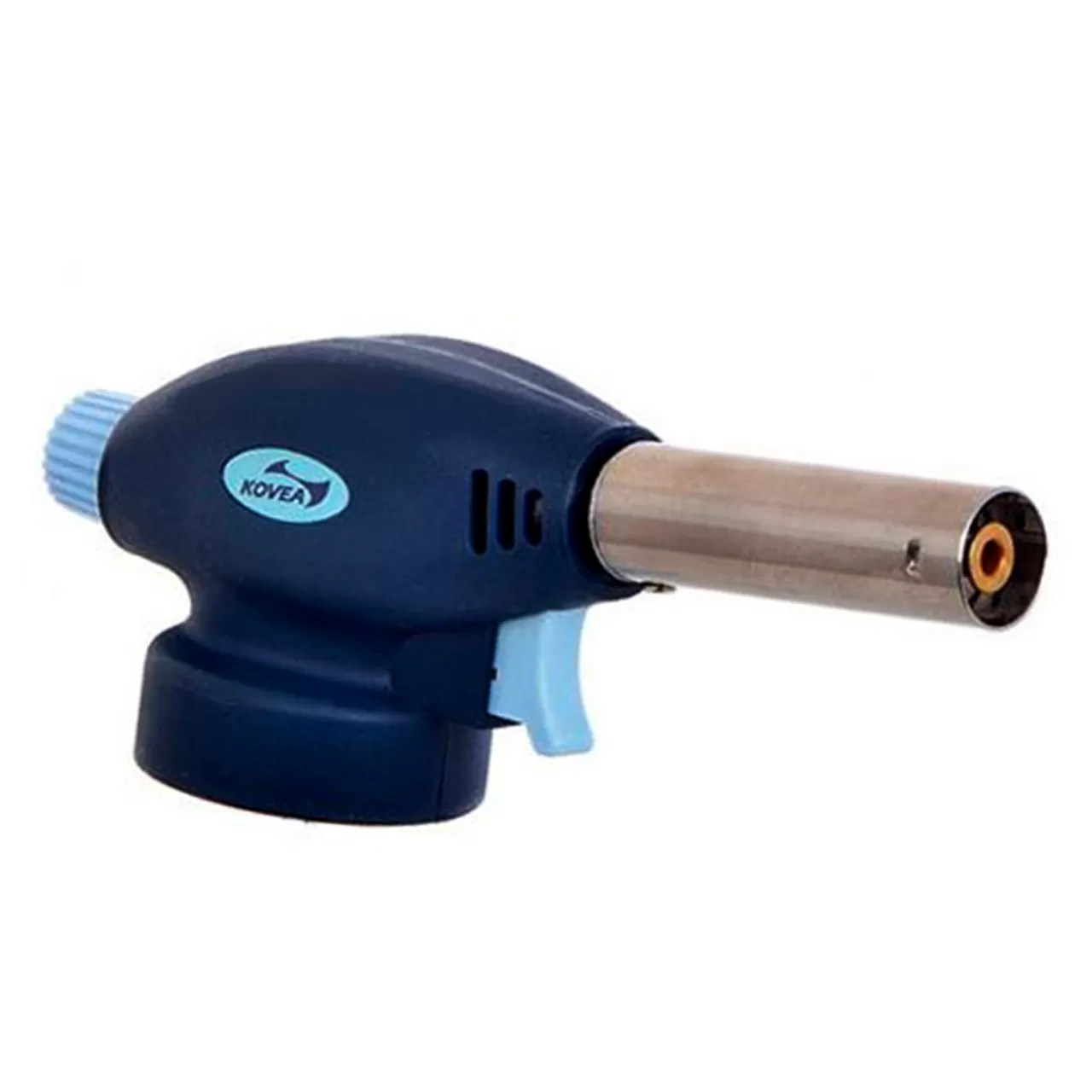 Поджиг осуществляется пьезоэлементом при нажатии курка. Металлическое сопло дает возможность нагревать предметы в труднодоступных местах. Горелка газовая позволет регулировать уровнь пламени.