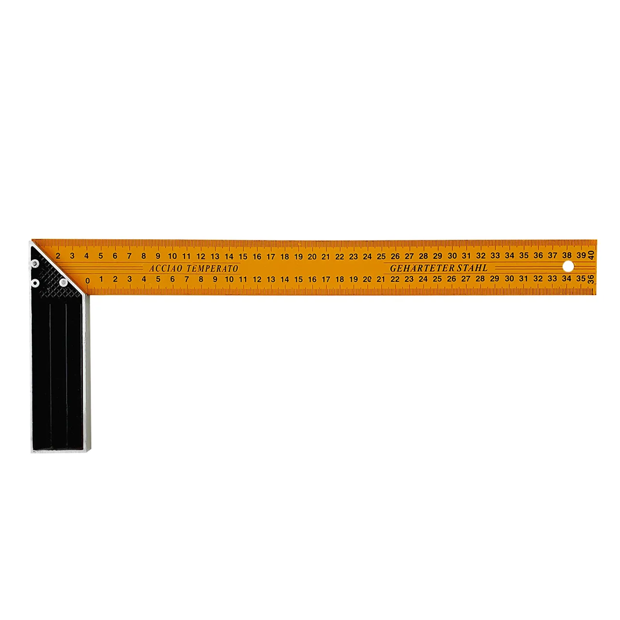 Угольник 400 мм состоит из гибкой металлической сантиметровой линейки, жестко соединенной с алюминиевым основанием со специальными пластиковыми ребристыми вставками.