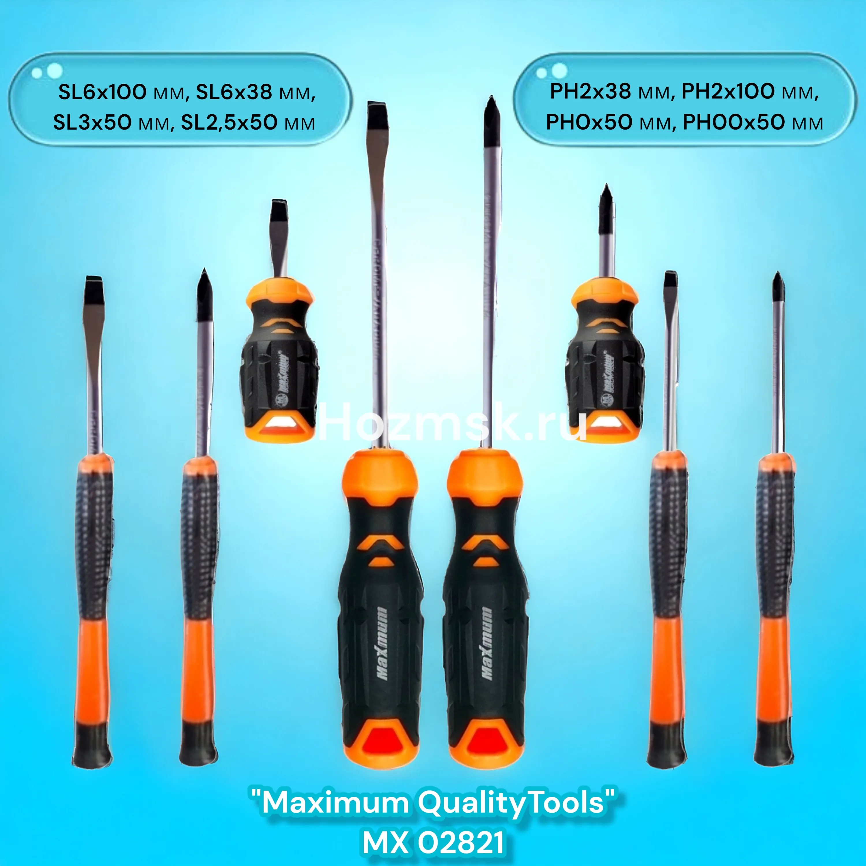 Набор отверток от «MAXIMUM QUALITY TOOLS» содержит 8 предметов. 4 отвертки в наборе прецизионные с точными фигурными профилями и подходят для точных работ, например, для часов и мелкой бытовой техники.
