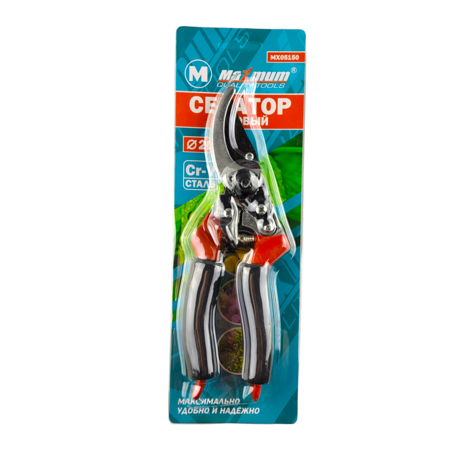 Секатор для обрезки веток и цветов со стеблем до 20 мм оборудован стальным лезвием SK5 и имеет ленточный тип привода. Садовый инструмент обеспечивает идеально гладкий срез, сохраняя целостность обрезаемых веток.