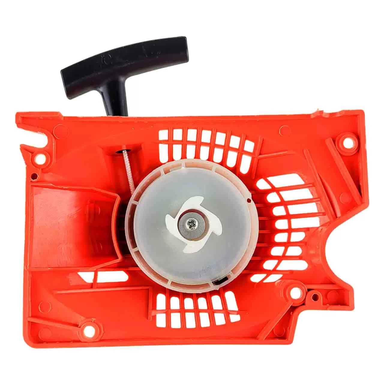 Стартер бензопилы в сборе имеет пусковой шнур 80 см длиной и убойную пластиковую рукоятку.