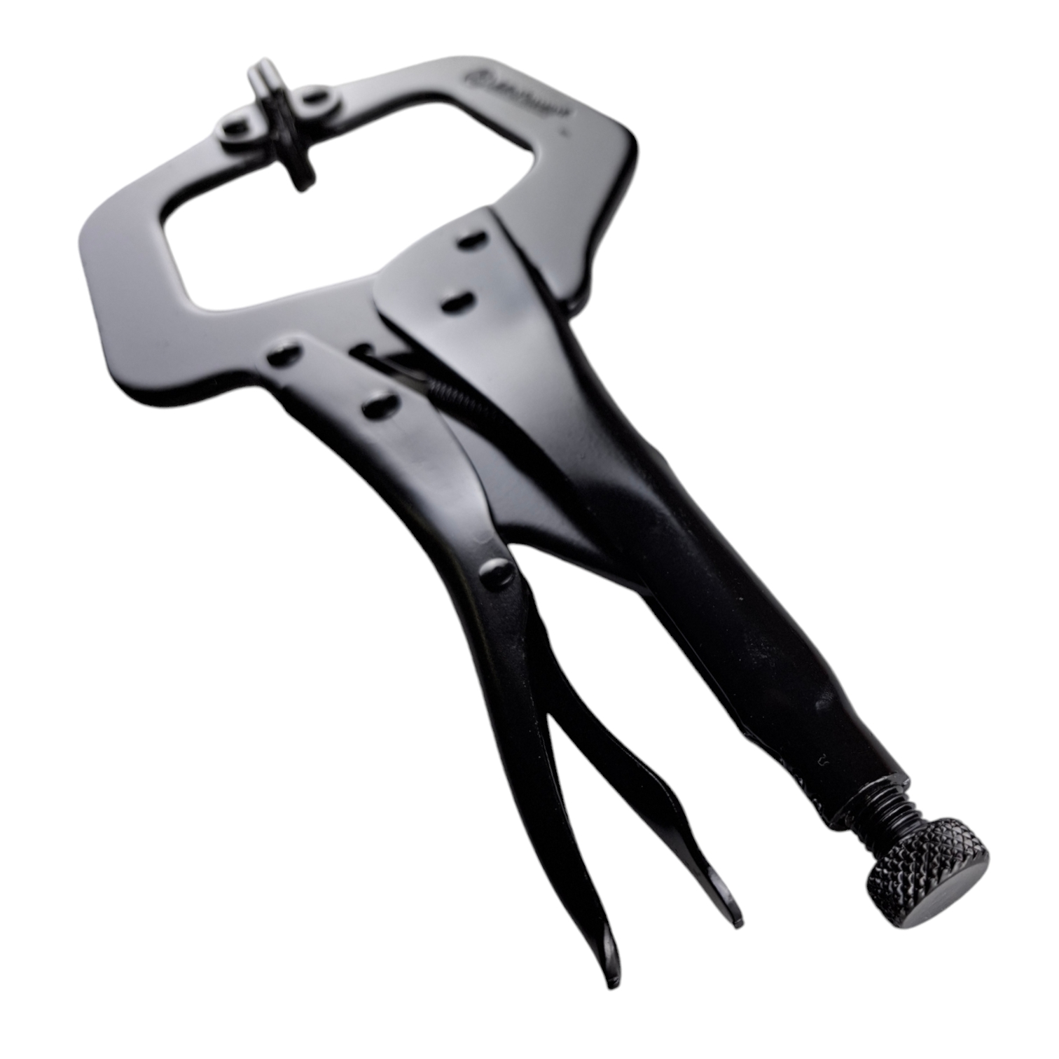 Мощные зажимные клещи длиной 280 мм с фиксатором и подвижными губками. Идеальный помощник для сварки, столярных и слесарных работ, обеспечивающий надежную фиксацию деталей сложной формы.