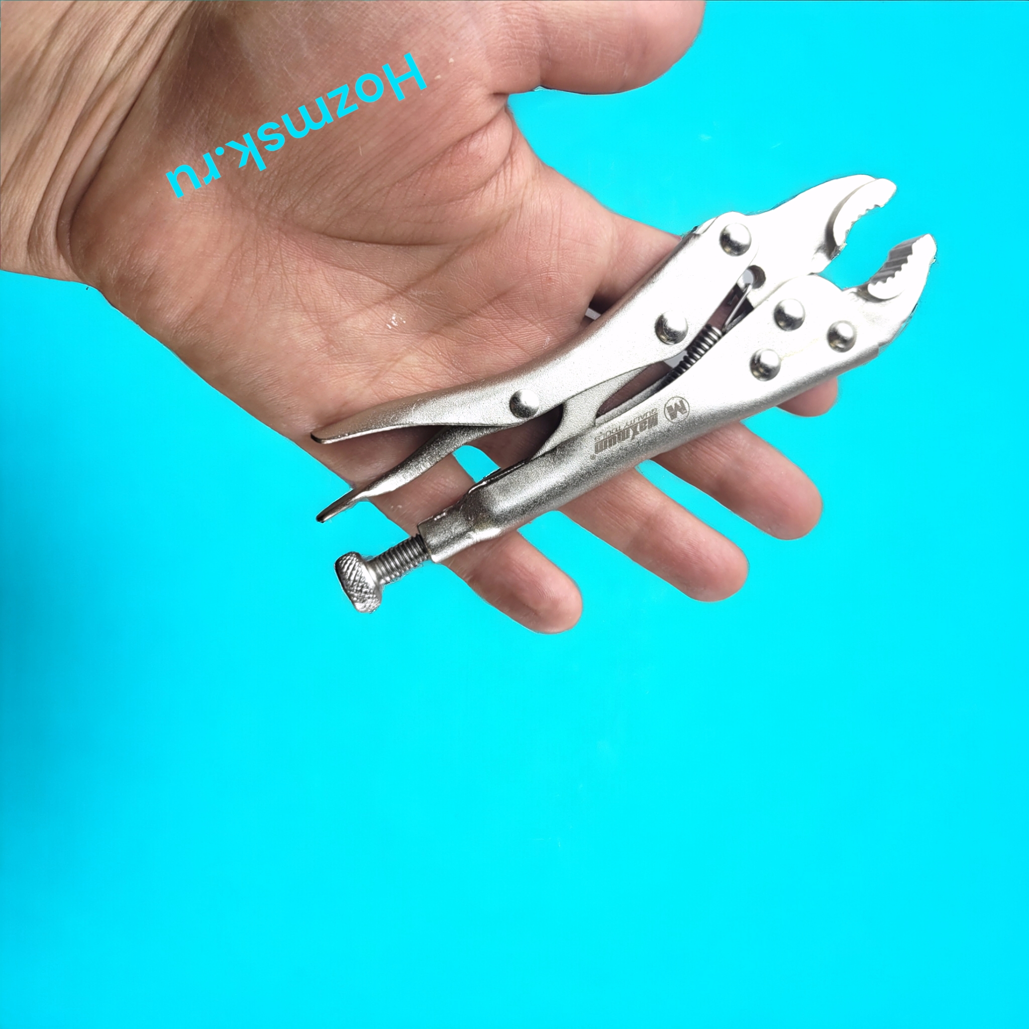 Клещи длиной 140 мм раскрытие губок до 20 мм, толщина губок 10 мм.