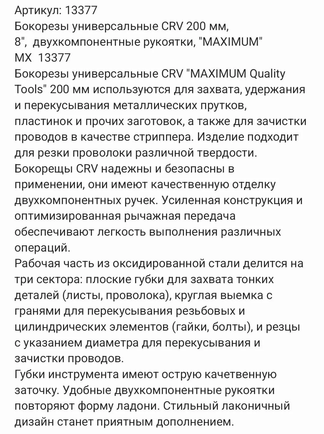 Губки инструмента имеют острую качественную заточку. Удобные двухкомпонентные рукоятки повторяют форму ладони. Стильный лаконичный дизайн станет приятным дополнением.