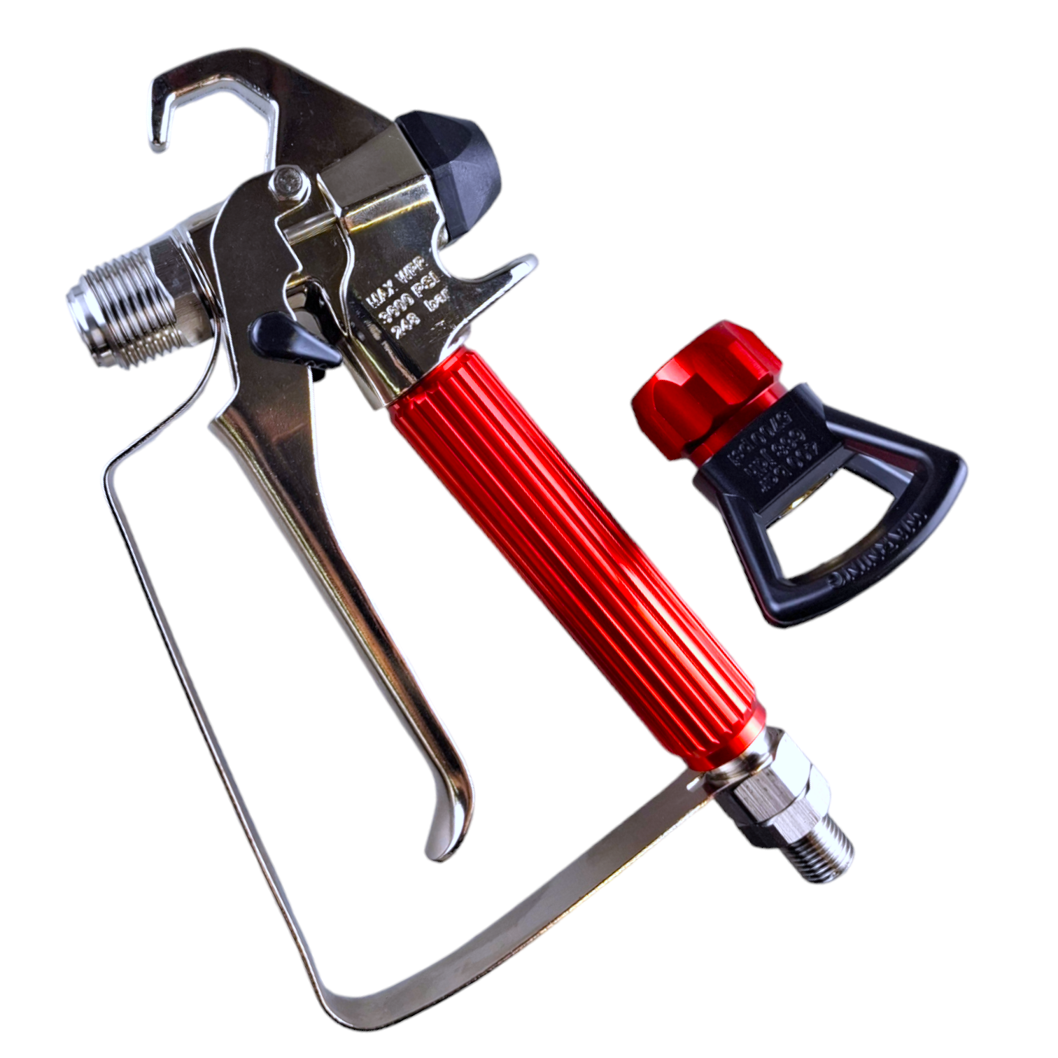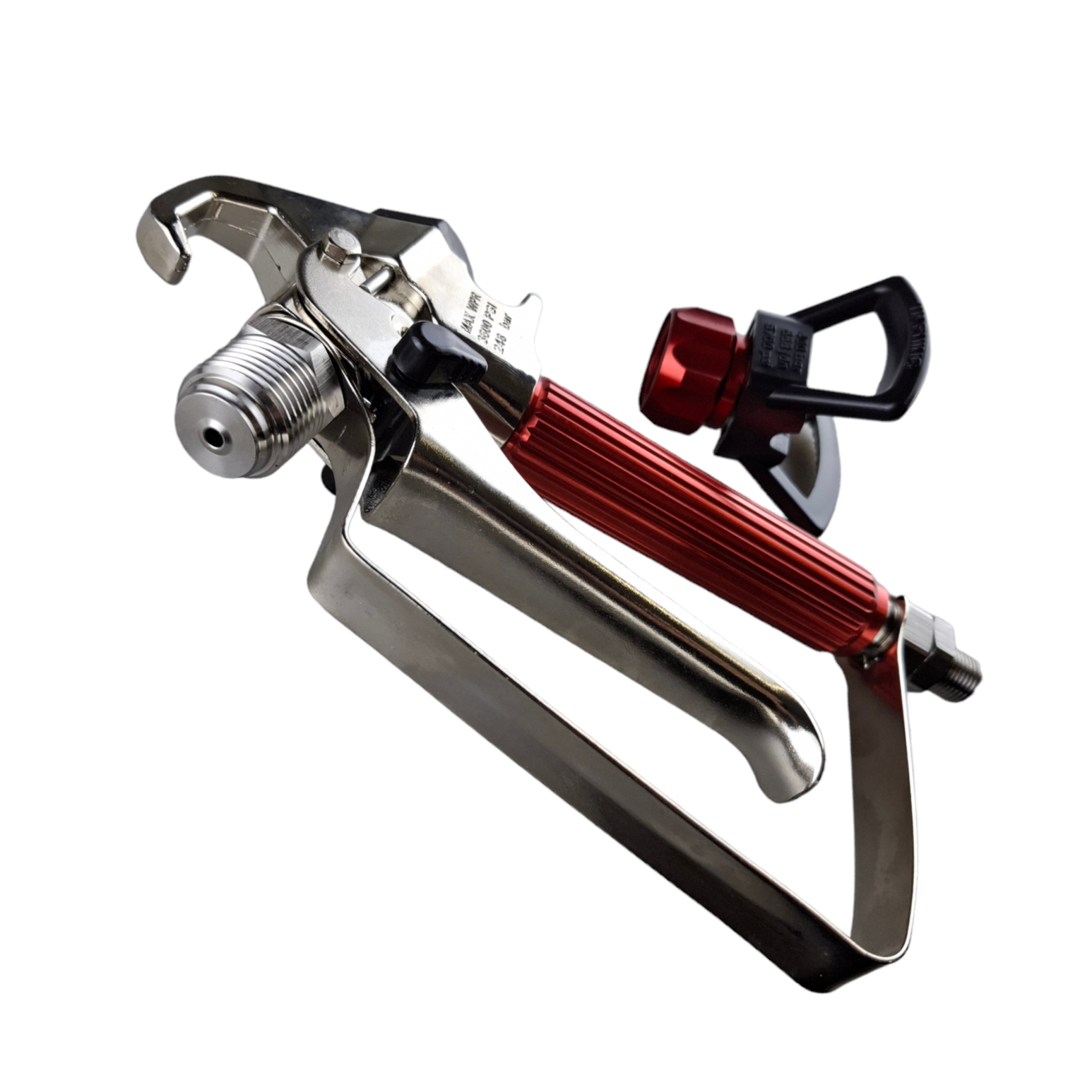 Окрасочный пистолет безвоздушный 1/4" с соплодержателем 248 бар используется для работы с жидкостями средней и высокой вязкости. Подключается к окрасочному аппарату, который подает краску из емкости по шлангу на краскопульт для распыления. Выходной разъем: 7/8.