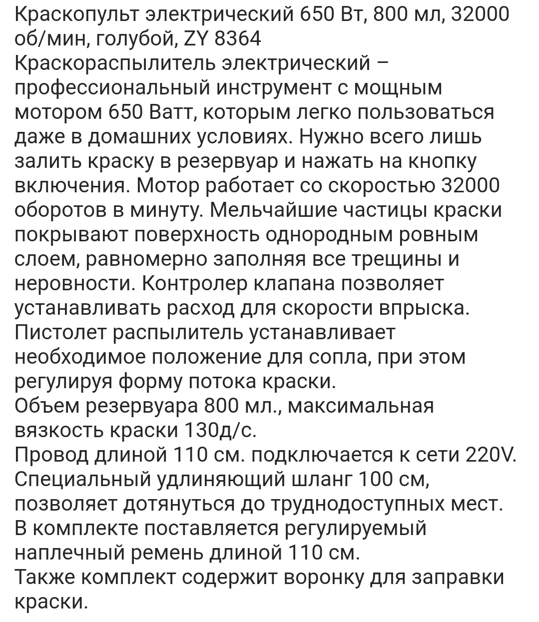 Краскораспылитель электрический – профессиональный инструмент с мощным мотором 650 Ватт, которым легко пользоваться даже в домашних условиях. Нужно всего лишь залить краску в резервуар и нажать на кнопку включения. Мотор работает со скоростью 32000 оборотов в минуту. Мельчайшие частицы краски покрывают поверхность однородным ровным слоем, равномерно заполняя все трещины и неровности. Контролер клапана позволяет устанавливать расход для скорости впрыска. Пистолет распылитель устанавливает необходимое положение для сопла, при этом регулируя форму потока краски.