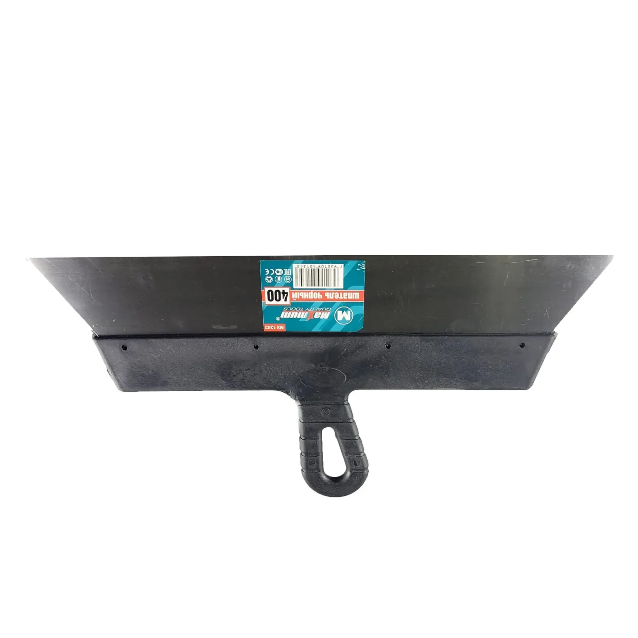 Шпатель 400 мм предназначен для фасадных и внутренних работ, выравнивания поверхностей при помощи строительных смесей. Выбор ширины полотна зависит от площади обрабатываемой поверхности.