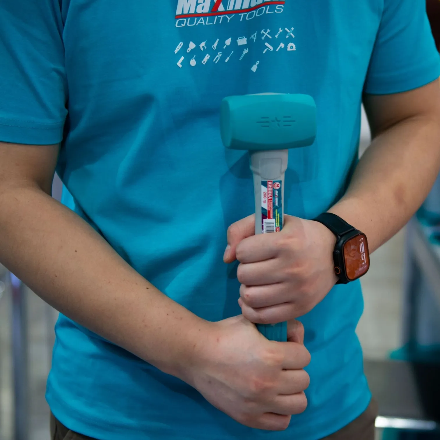 Киянка резиновая "MAXIMUM" 200 г. с фиберглассовой ручкой - профессиональный инструмент для монтажа и сборки. Длина фиберглассовой рукоятки 300 мм., ширина жесткого резинового бойка 80 мм.