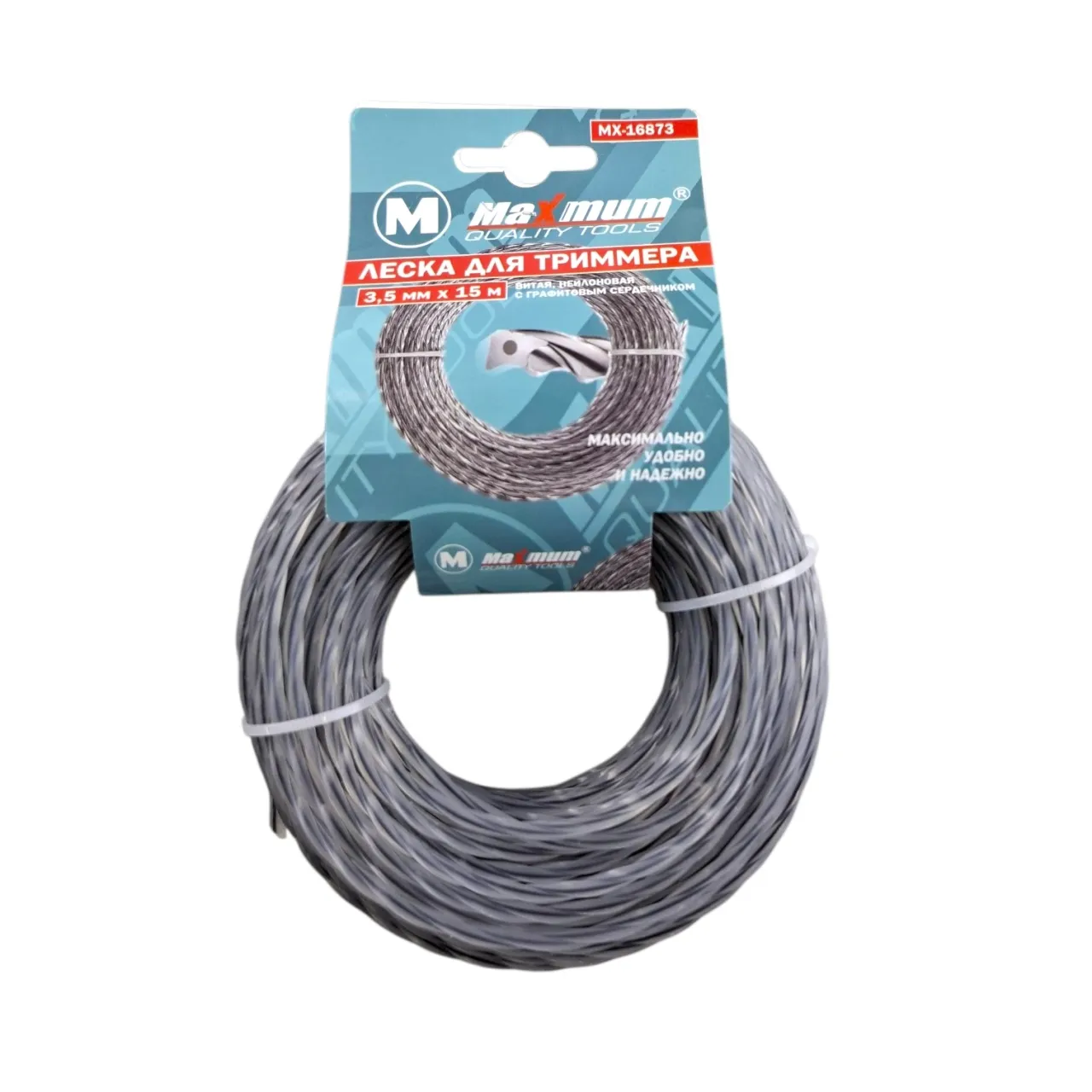 Профессиональная леска для триммеров 3,5 мм предназначена для серьезных задач — толстое сечение, прочный графитовый сердечник и витая форма, вместе обеспечивают исключительную долговечность и режущую способность.