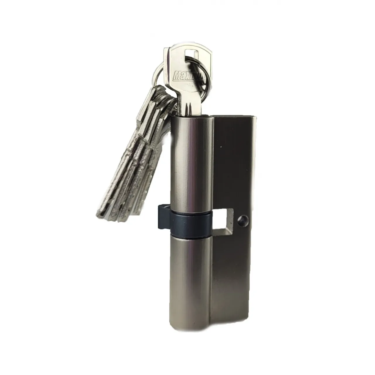 Личинка для замка 80 мм от бренда «Maximum Quality Tools» с пятью перфоключами повышенной секретности и имеет модификацию ключ-ключ. Секретные пины грибовидной формы 5 шт. позволяют противостоять открытию методом подбора секретного кода. Евроцилиндр ключ-ключ имеет защитные стержни из высокопрочной стали, защищающие механизм от разрушения методом высверливания.