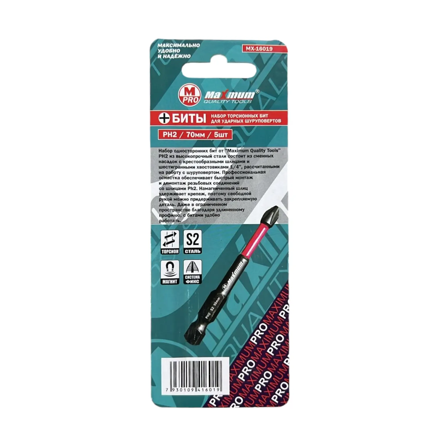 Биты торсионные 70 мм PH2 от "Maximum Quality Tools" имеют намагниченные шлицы и шестигранные хвостовики 1/4.