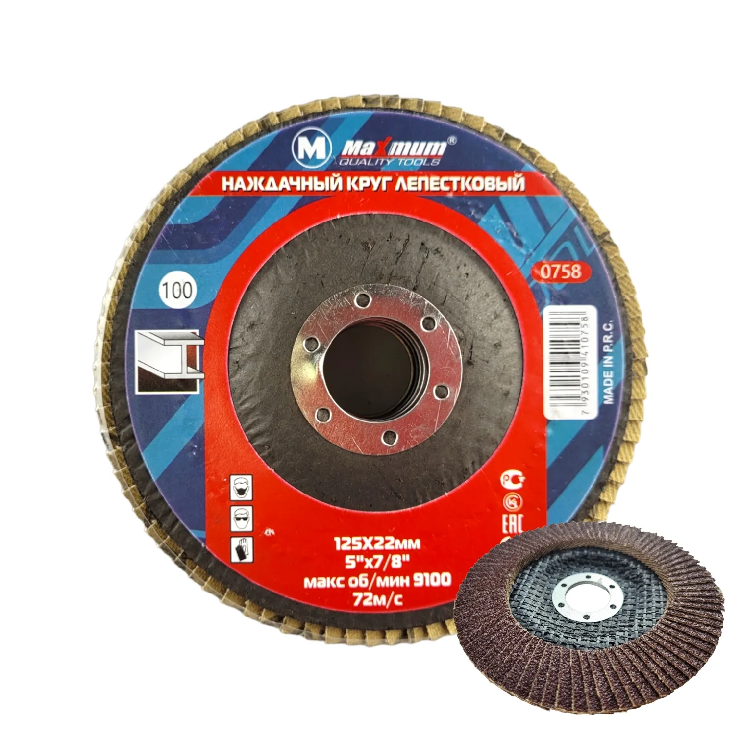Круг торцевой P 100 диаметром 125 мм изготовлен на основе шлифовальной шкурки в форме лепестков на тканевой основе. Применяется в шлифовальных работах по металлу, дереву и другим материалам. Торцевой круг 125 мм предназначен для плоского шлифования и обработки кромок и сварных швов деталей и конструкций из различных марок сталей, цветных металлов. Устанавливается на шлифмашину угловую с посадочным диаметром 22 мм.