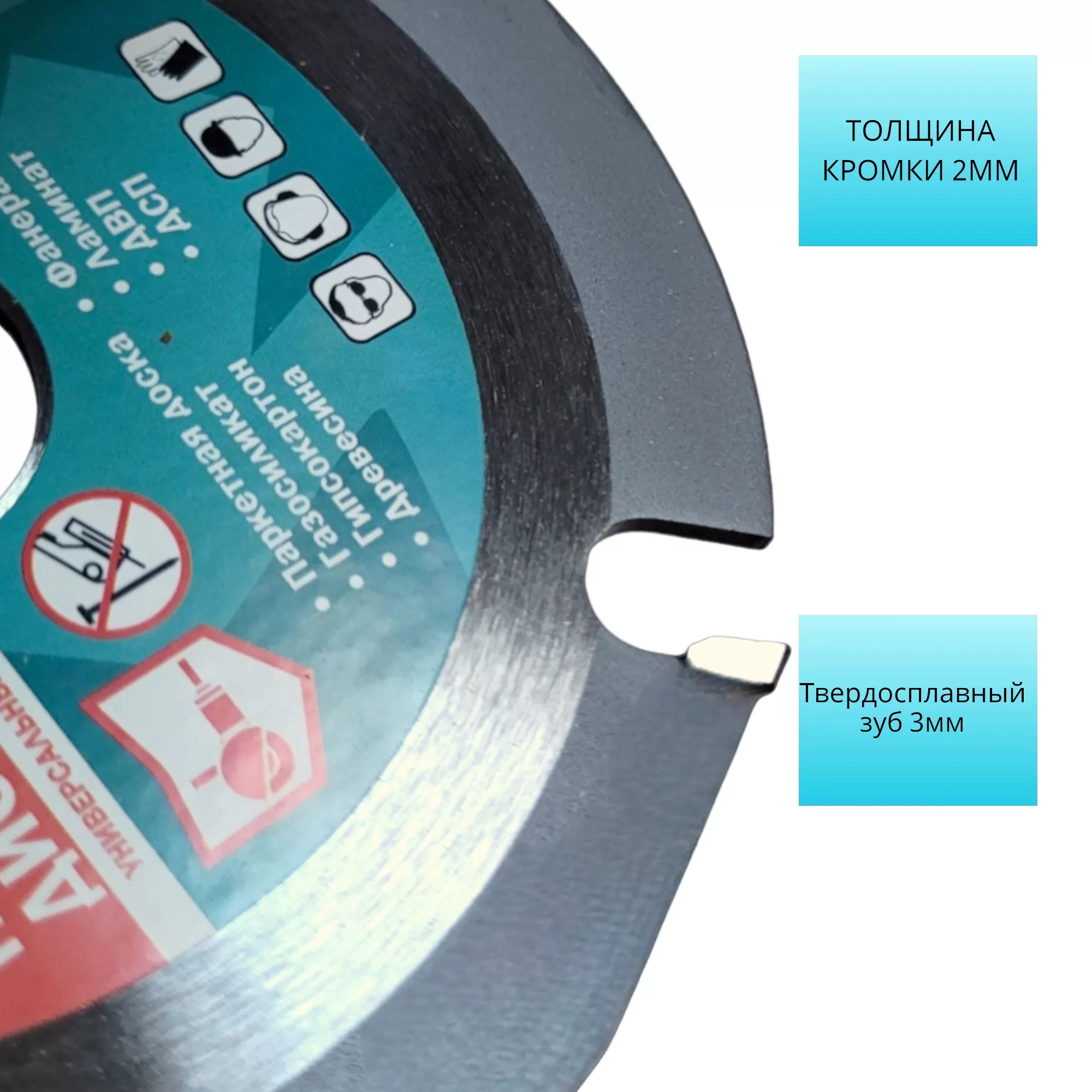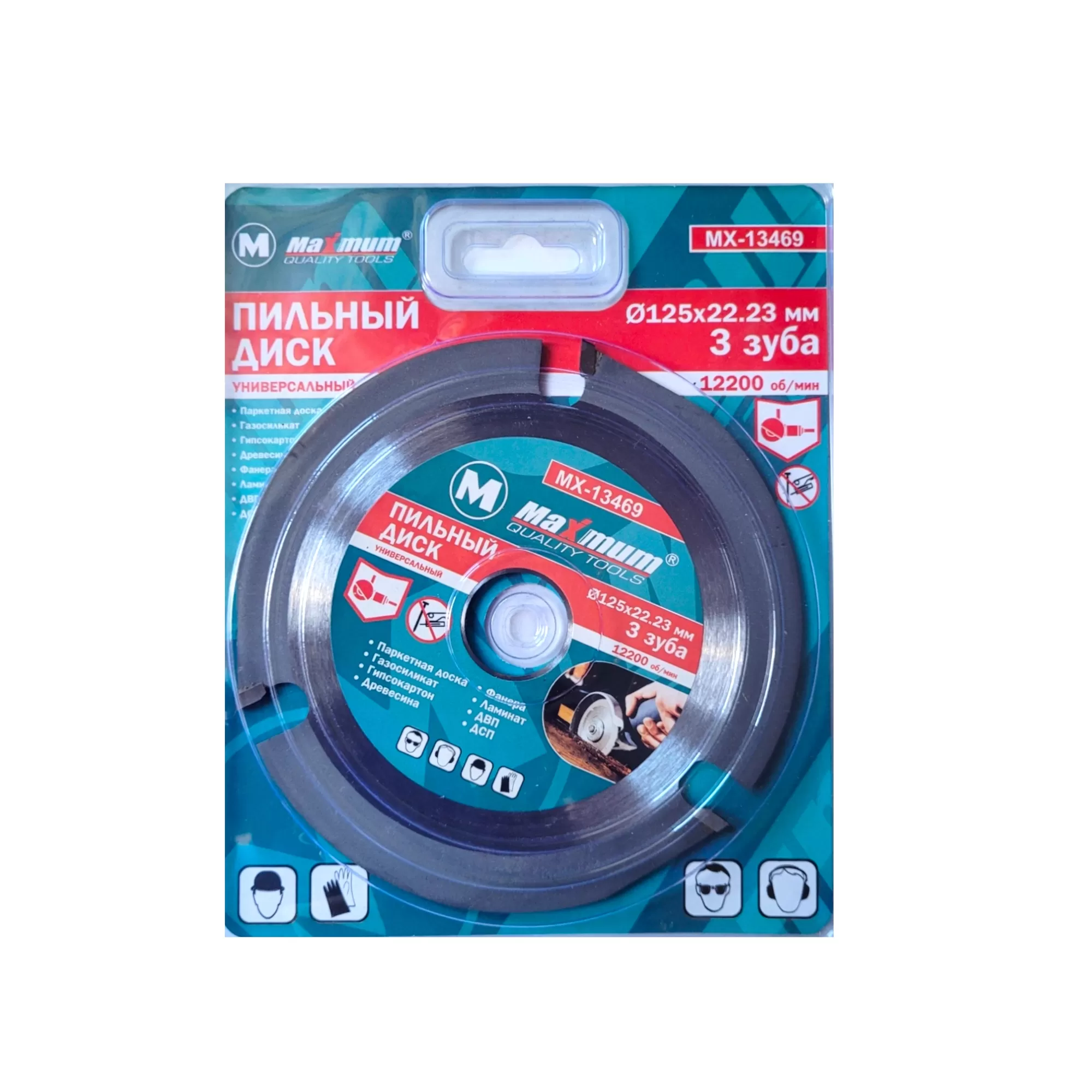 Пильный диск для УШМ универсальный 125x22.23 мм от "Maximum" имеет 3 твердосплавных зуба и предназначен для угловых шлифовальных машин и ручных резчиков. Диск применяется для ровного и чистого реза древесины, фанеры, ламината, паркетных досок, гипсокартона, ДВП, ДСП, а также выборки пазов в газосиликате.