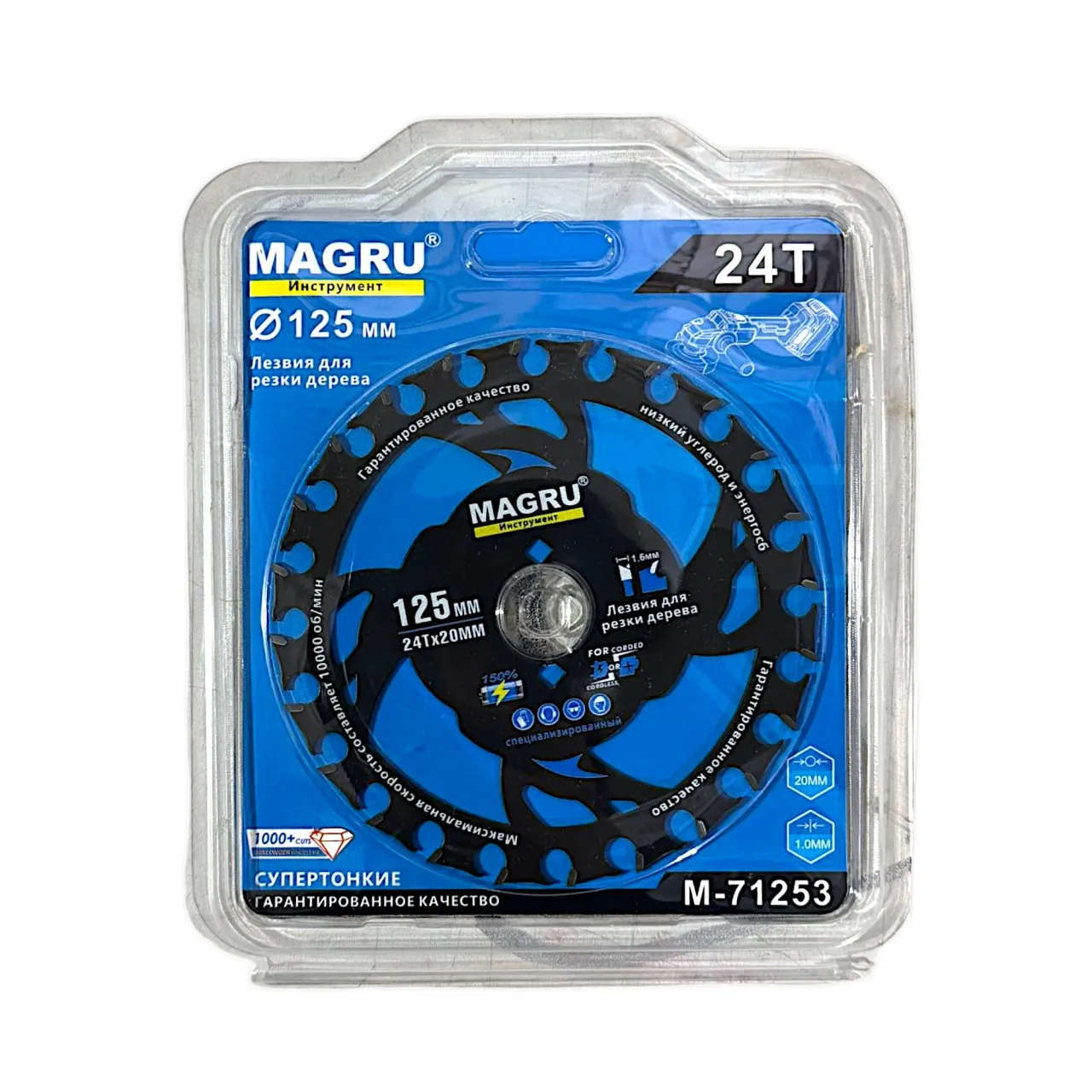 Супер тонкий пильный диск по дереву 125 мм с 24 твердосплавными зубьями, приваренными к стальной основе, выпускается специально для использования с циркуляркой. Эффективные энергосберегающие лезвия