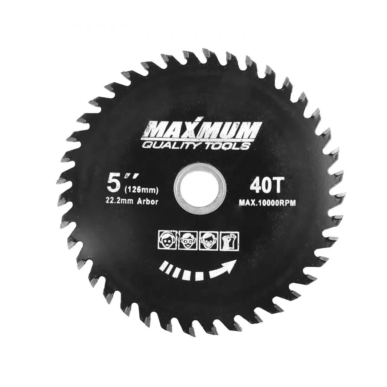 Диск по дереву 125 мм имеет 40 острых твердосплавных зубьев, которые режут дерево быстро, оставляя аккуратный, четкий срез. Пильный диск имеет посадочное место 22,2 мм и предназначен для распила изделий из древесины с помощью циркулярной пилы. Допустимое максимальное количество оборотов в минуту 10000.