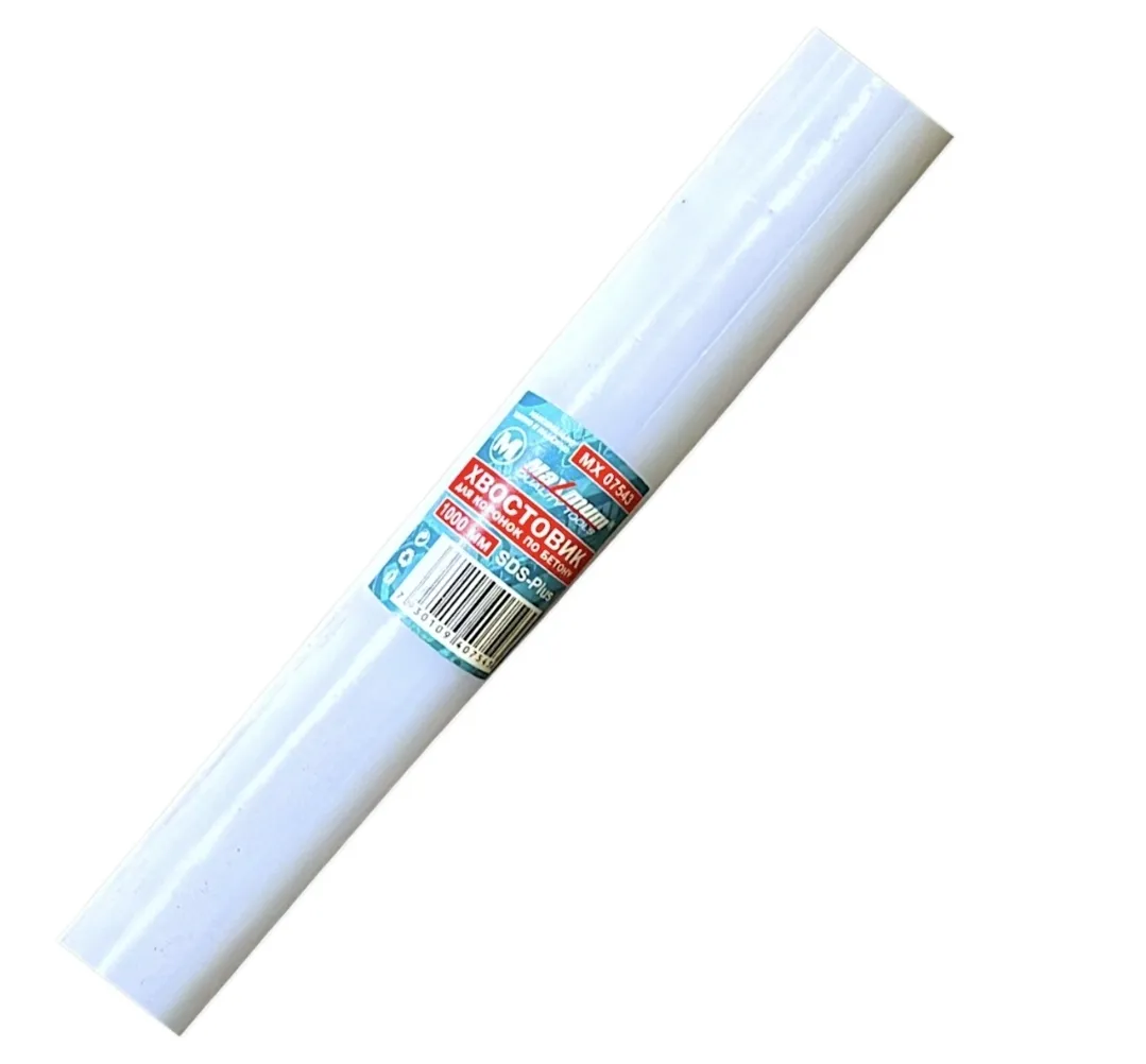 Хвостовик бура 1000 мм SDS Plus — дополнительно имеет 4 паза (два открытых для направляющих клиньев и два закрытых для фиксации стопорными шариками), которые увеличивают площадь контакта клиньев до 75 мм в квадрате. Державка предназначена для использования совместно с буровыми коронками по бетону, известняку, камню, кирпичу и клинкеру. Посадочный диаметр М22. В конструкции адаптера 1000 мм SDS-Plus предусмотрено сверло для центрирования.