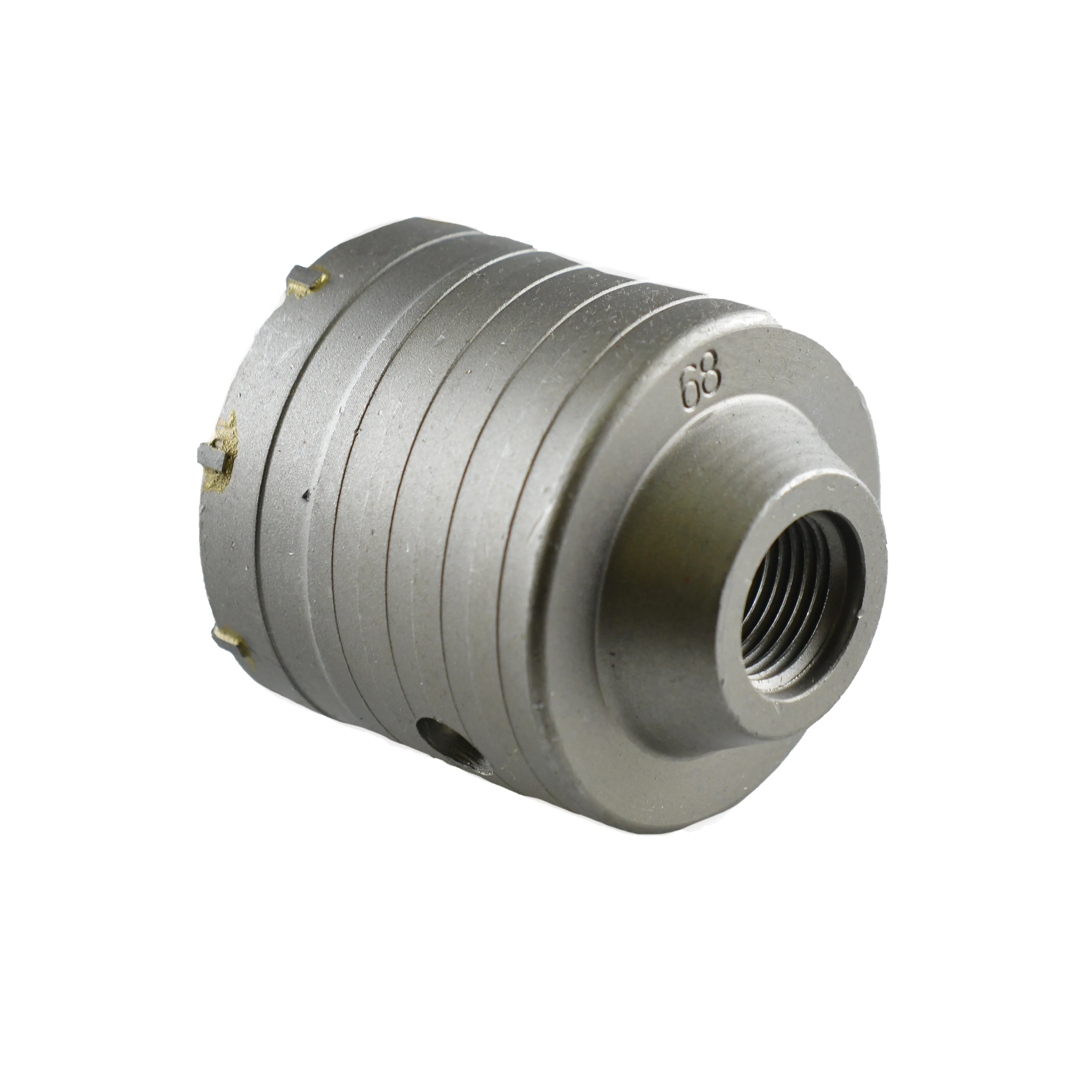 Коронка по бетону SDS plus 68 мм - отличный сверлильный инструмент, который представляет пользователю громадное число вариантов комбинаций благодаря особым резьбовым соединениям. Крепление коронки имеет посадочное место М 22 и позволяет осуществлять быструю сборку благодаря удобной резьбе.