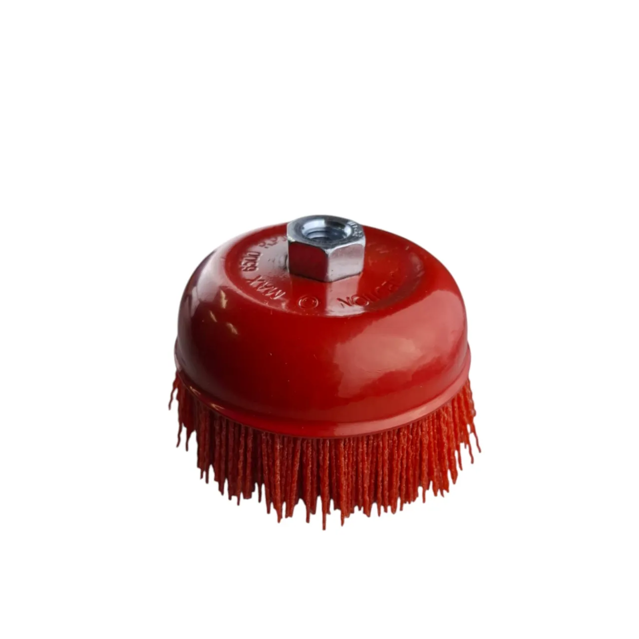 Универсальная нейлоновая чашечная щётка диаметром 75 мм для УШМ (болгарки) идеальна для деликатной очистки и работы с цветными металлами.