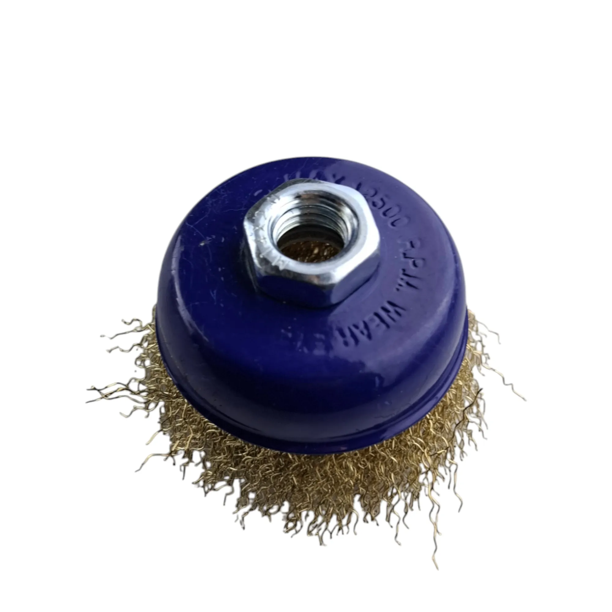 Чашечная латунированная корщетка 65 мм предназначена для установки на угловую шлифовальную машину (УШМ, "болгарку"). Она используется для интенсивной очистки, удаления стойких загрязнений и обработки больших площадей.