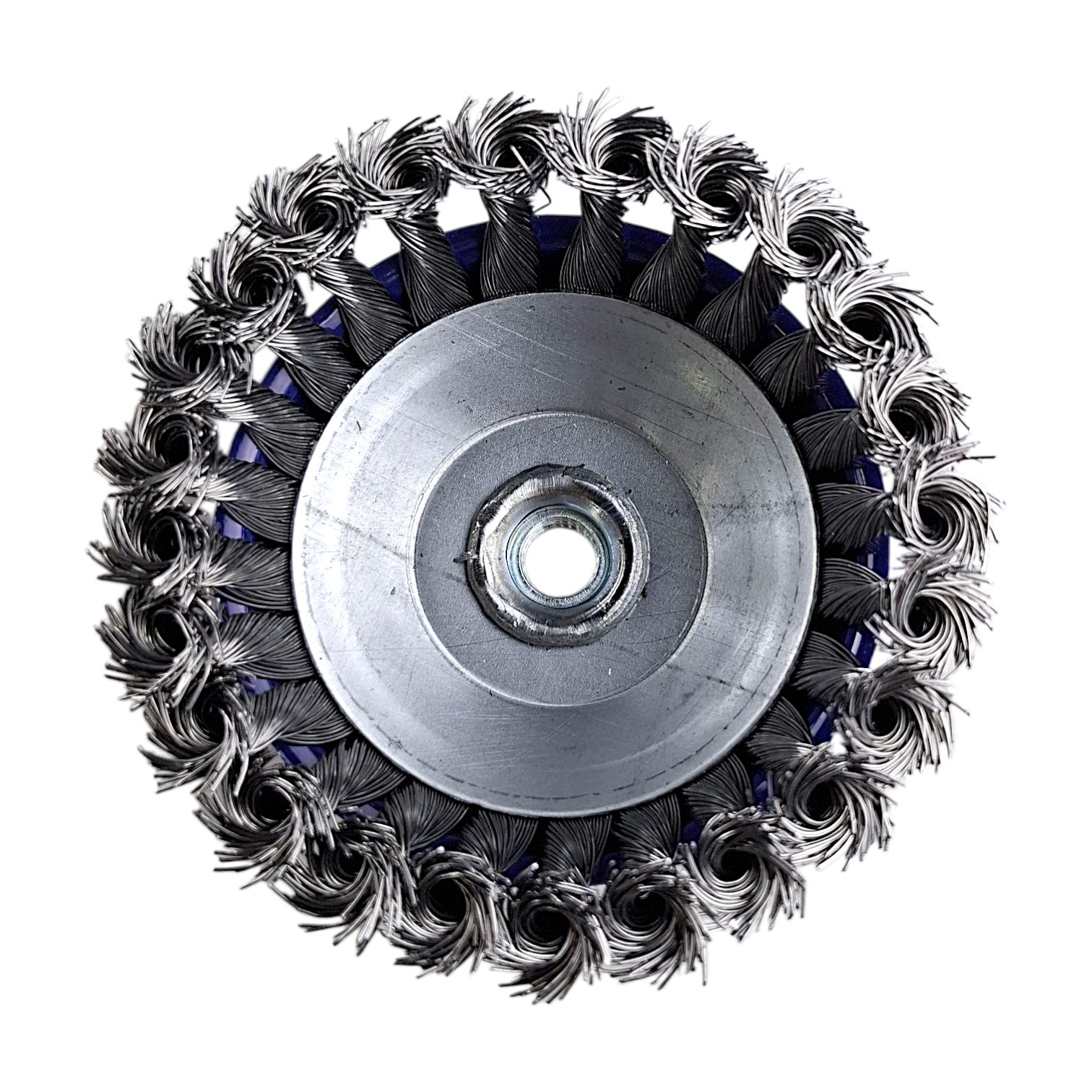 Стальная закаленная проволока толщиной 0.6 мм скручена в жгуты, которые меньше ломаются и вырываются по сравнению с щетками с "ершом" из прямой проволоки.