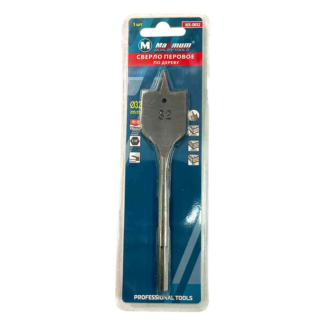 Сверло перьевое по дереву 32 мм создано для дрелей и шуруповертов и оборудовано шестигранным хвостовиком ¼.