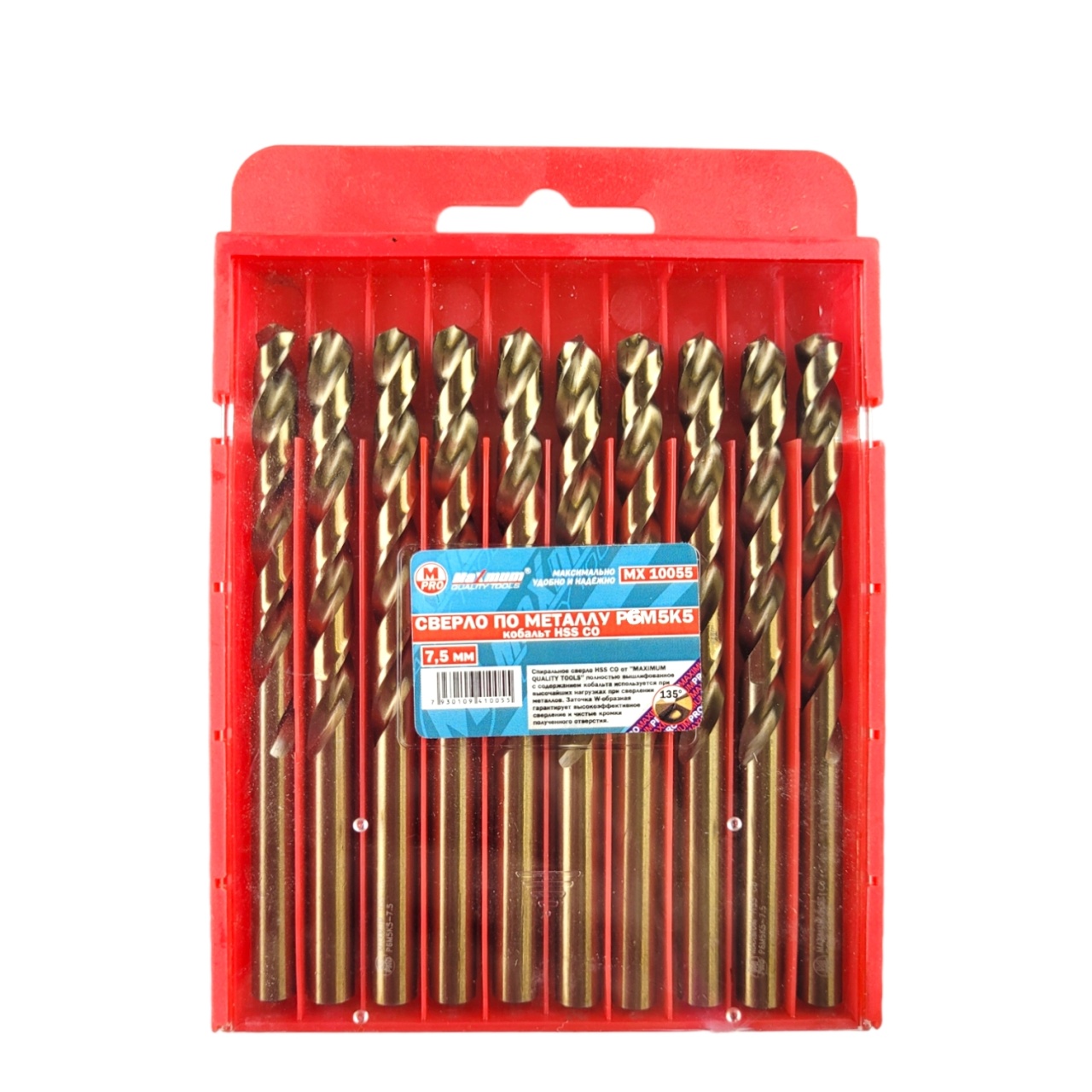 Сверла по металлу HSS 7,5 мм из стали P6M5K5 с добавлением кобальта от «Maximum Quality Tools» создают отверстия в металлических конструкциях и листовой стали. Высокая прочность сверла 7,5 мм с добавлением кобальта обеспечивает безопасную и быструю работу.