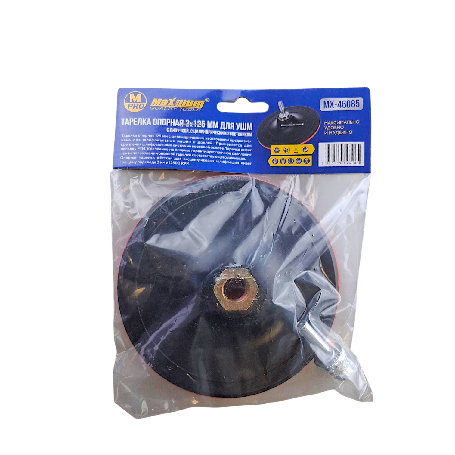Тарелка опорная 3×125 мм для УШМ, с липучкой, цилиндрический хвостовик, "MAXIMUM" (Максимум)MX 46085